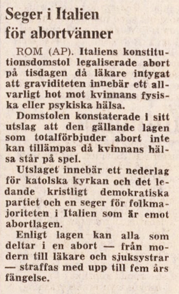 Italien har ju, tillsammans med exempelvis Irland, tillhört de länder i världen som har väldigt hårda abortlagar. Detta var ett steg på vägen mot en friare abort, men (återigen med facit i hand) det är inte riktigt bra nu heller.