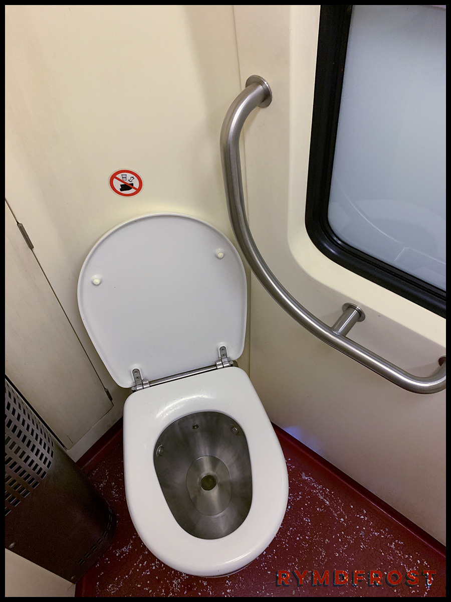 På väg från Amsterdam gick jag förresten på tågtoaletten. Den såg okej ut. Ungefär som toaletterna ombord på mina Öresundståg. Efter uträttat förvärv tryckte jag på spolknappen, och toaletten började (inte helt oväntat) att spola. Men samtidigt började vattenkranen spotta ur sig vatten. Jag fick genast hålla fram händerna och börja tvätta dem för att inte bli nedblött, för strålen blev starkare och starkare. Till slut fick jag snabbt öppna dörren och gå ut. Kan jag anta att det inte direkt är så här det ska fungera?
