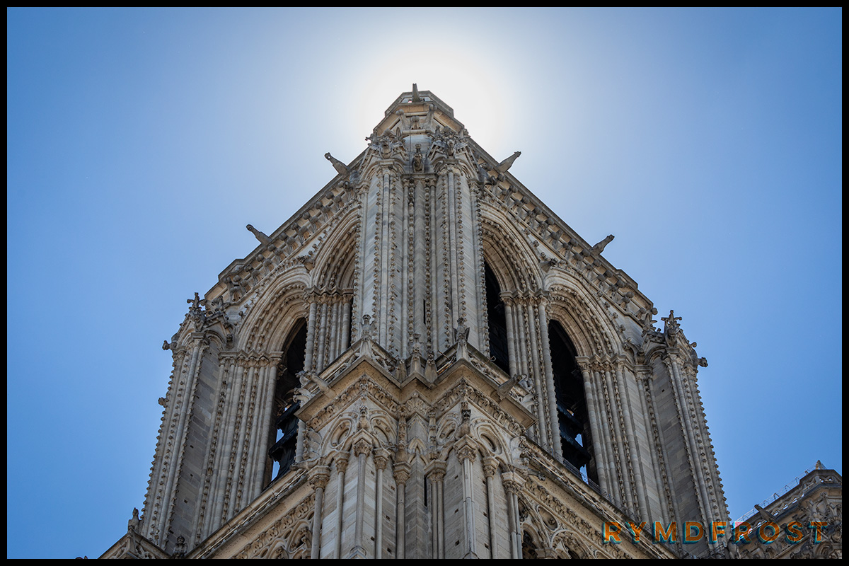 Från en kyrka till en annan: Notre-Dame. Som givetvis, efter branden, inte gick att komma in i alls. Stora avspärrningar, i form av höga staket med taggtråd ovanpå, höll folk på avstånd.