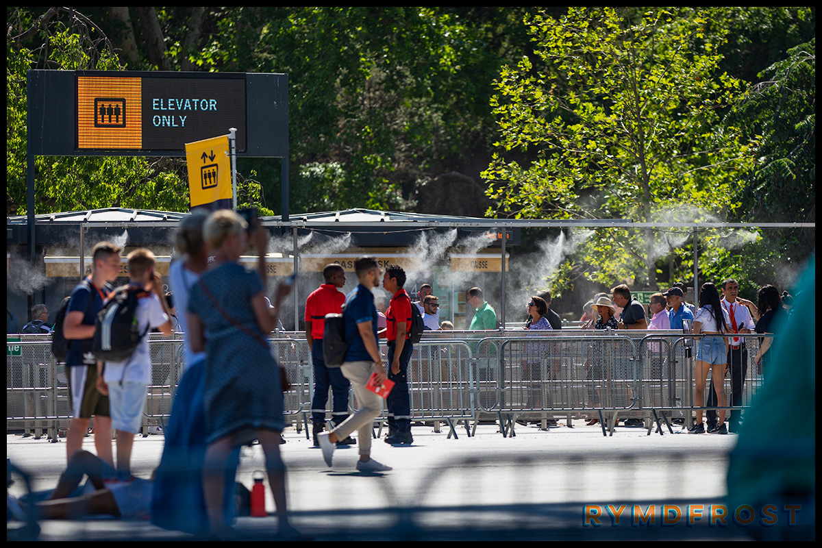 Vi fick intrycket att »säkerhetskontrollen« endast var till för att sakta ner kön ytterligare, eftersom de underdimensionerade hissarna inte på långa vägar hann med att föra folk upp och ner i tornet.