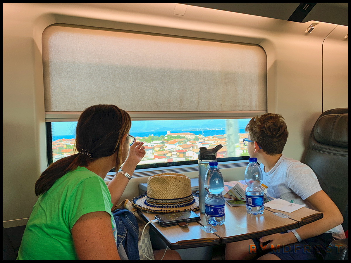 Snabbtåget var ett Frecciarossa 1000, det snabbaste snabbtåget som Italien har att erbjuda. Det gled in på stationen, rött och lyxigt, en 10-15 minuter före avgångstid (det hade startat i Udine i nordost tidigare på dagen).
