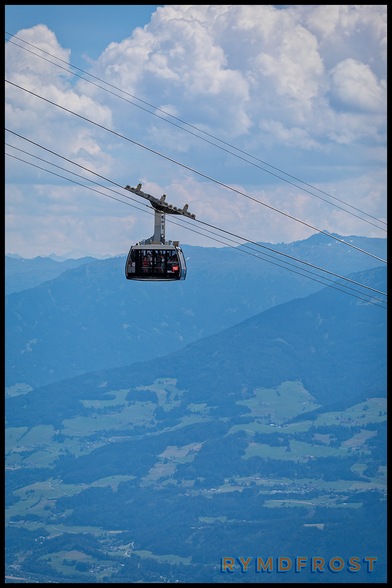 Liftoperatören (som stod i vagnen med oss och manövrerade vagnen) pratade med någon i telefon och ropade sedan ut något på tyska. Något om ett tekniskt fel. Det tog några minuter – och sedan rörde vi oss igen. Resten gick utan problem. Lite spänning i vardagen!
