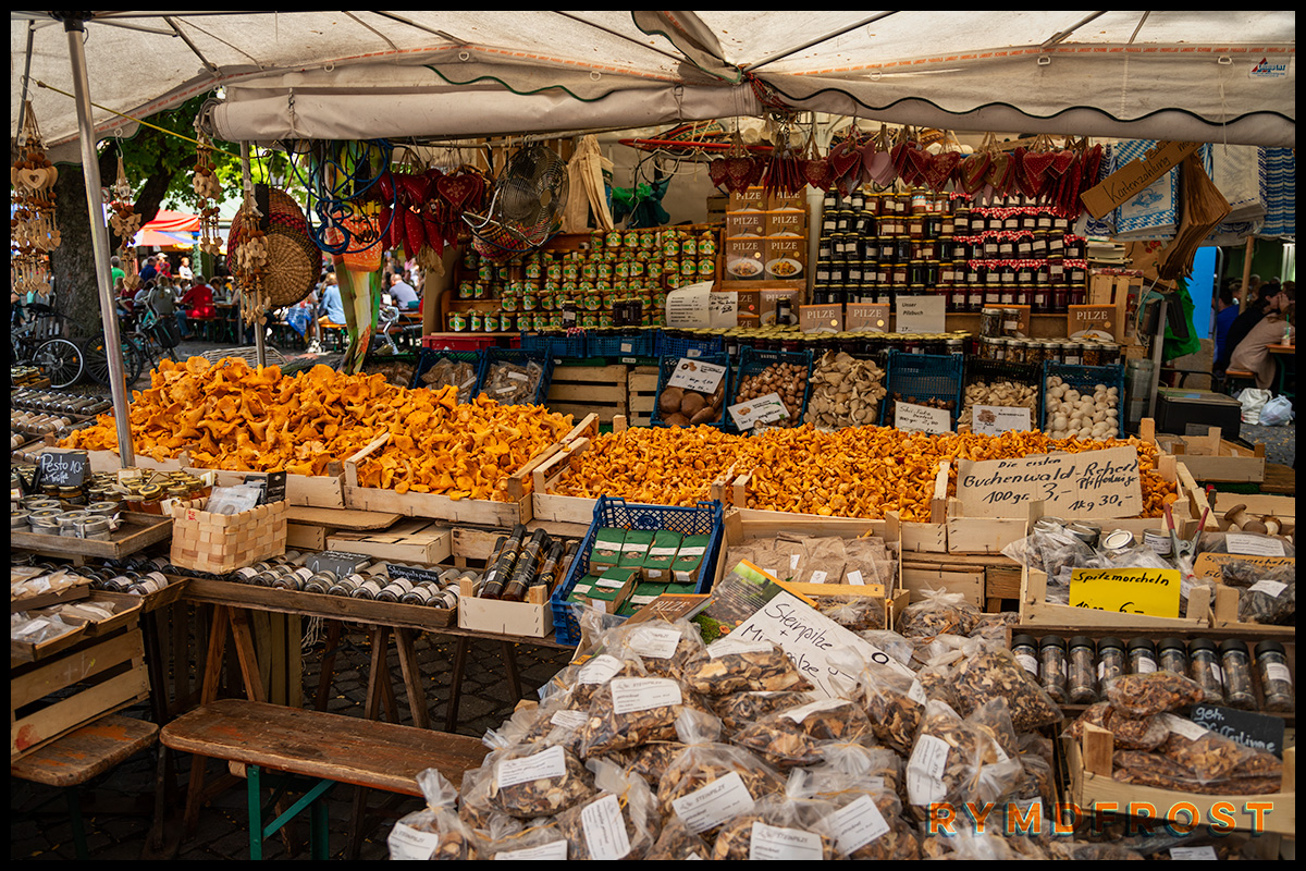 Vi gick bort till Viktualienmarkt, den stora marknadsplatsen där det finns massor av handlare och matställen. Mycket gott att välja mellan. Jag tog någon köttbit, som till både utseende och smak påminde om dansk flæskesteg, fast med sauerkraut som tillbehör. Väldigt gott! 😋