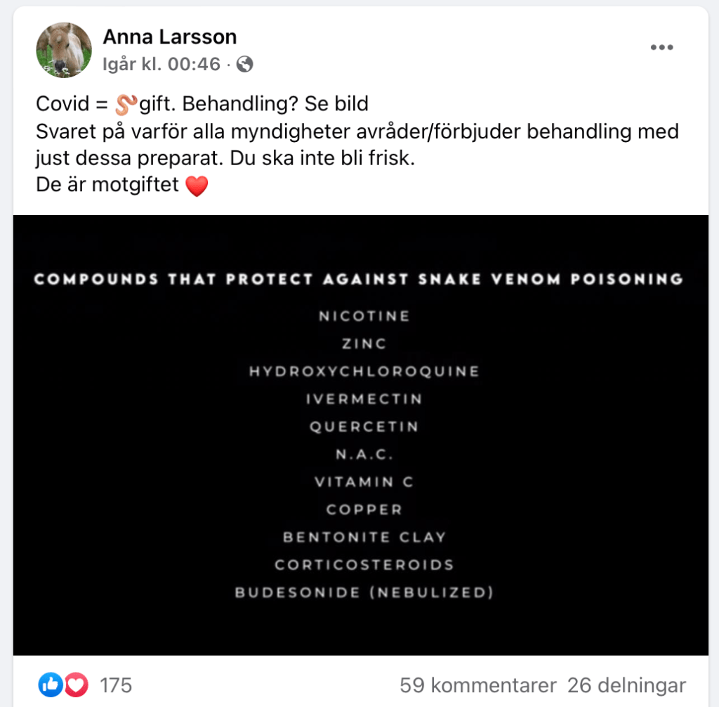 De bisarra påståendena är förstås inte begränsade till en enda grupp på Facebook. Det finns även enskilda individer på Twitter vars inlägg till nästan hundra procent handlar om spridande av allehanda teorier. För att nu inte tala om kanaler på Telegram och andra plattformar.