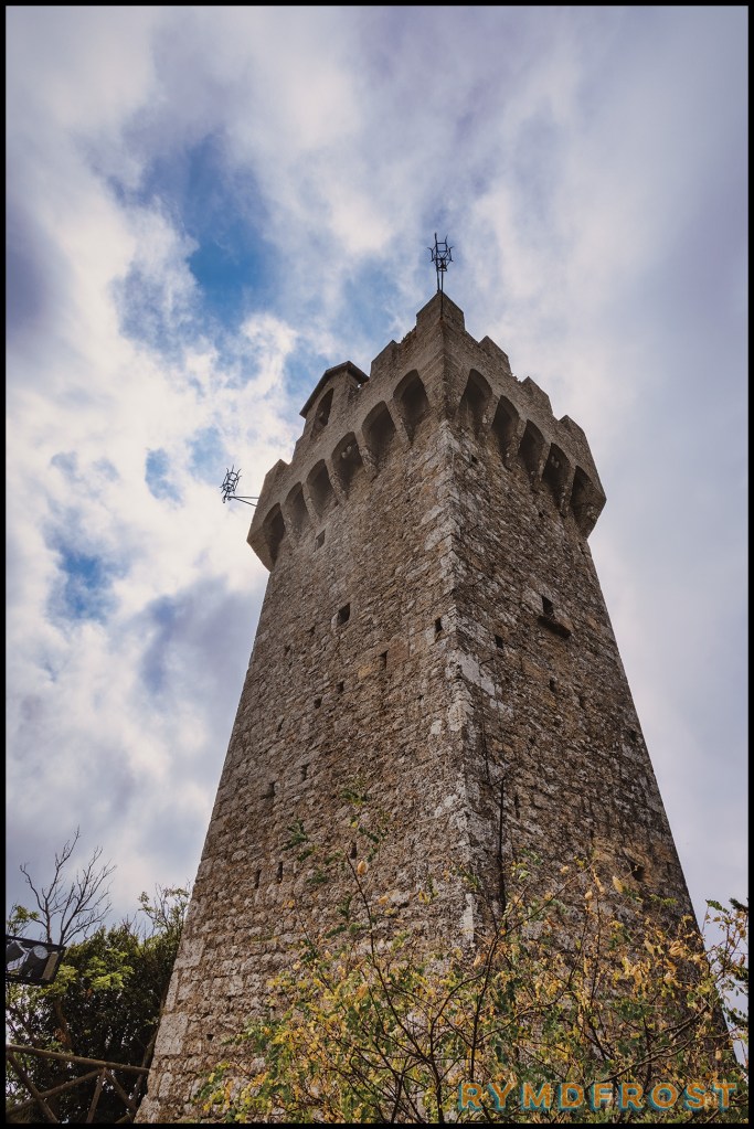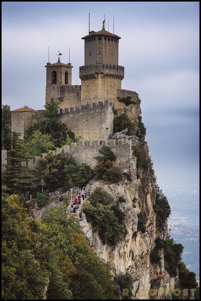 Vi siktade först på att parkera lite längre ned på berget och ta Funivia di San Marino, eller bergbanan, upp. Där var dock redan knökat med bilar, så vi fortsatte uppåt på vinst och förlust. Turligt nog hittade vi snabbt en parkeringsplats och kunde börja utforska klippstaden.