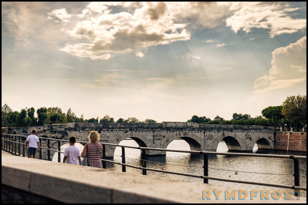 Den kallas omväxlande Ponte di Tiberio och Pons Augustus, lite grand beroende på om man vill hedra kejsaren som startade bygget av bron eller kejsaren som avslutade det.